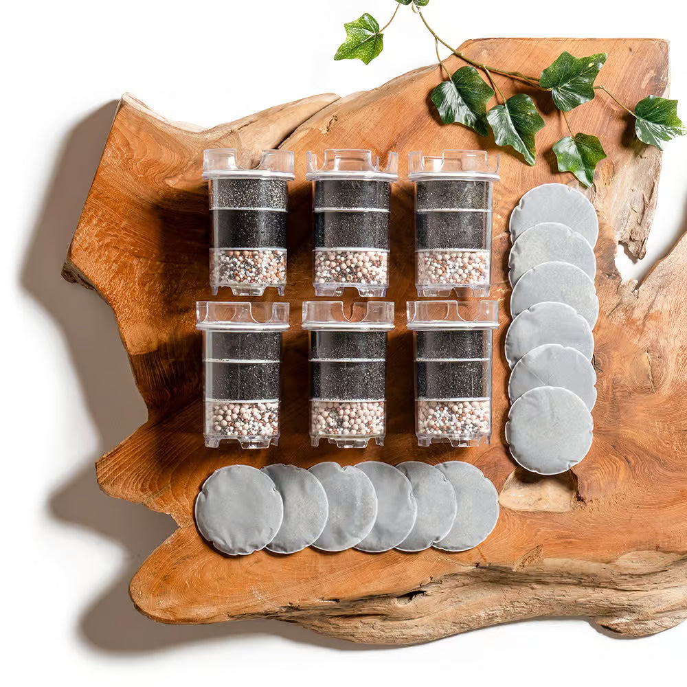 6 filtre og 12 kalkfilter‑pads | udskiftningspakke til vandfilter – Helårspakke